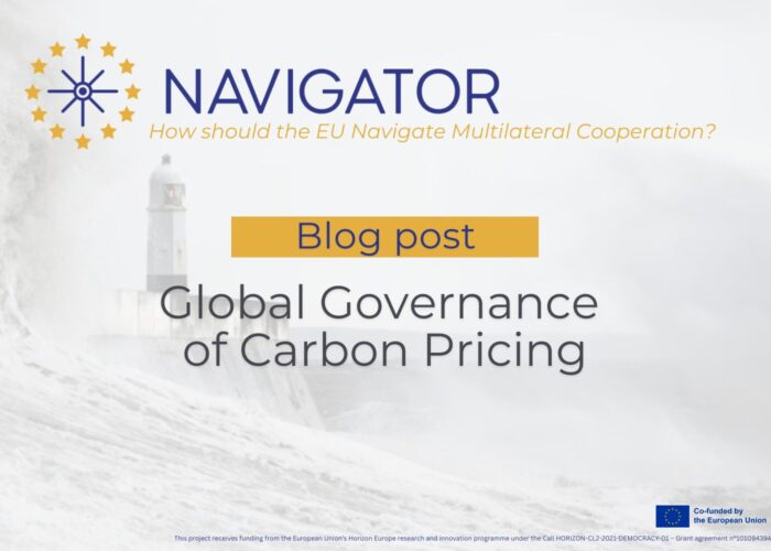 Continue reading "Blog post – Global Governance of Carbon Pricing"How should the EU navigate the increasingly complex - and conflict-laden - institutional spaces of global governance to advance a rules-based international order? And what factors should be emphasized when considering which institutions to strengthen, which to reform, and which to by-pass when revitalising multilateralism? To examine these questions and provide recommendations to the EU, NAVIGATOR brings together 13 leading academic and non-academic institutions, hailing from 11 different countries across four continents. The project runs from March 2023 until February 2027.